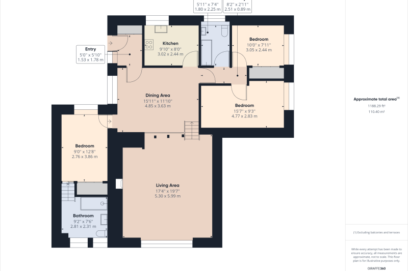 Two double bedrooms (one en-suite) and one twin bedroom