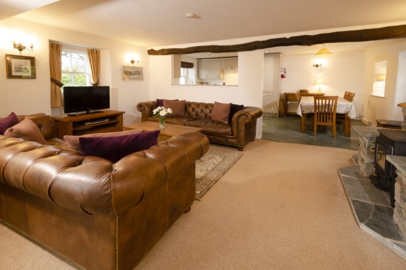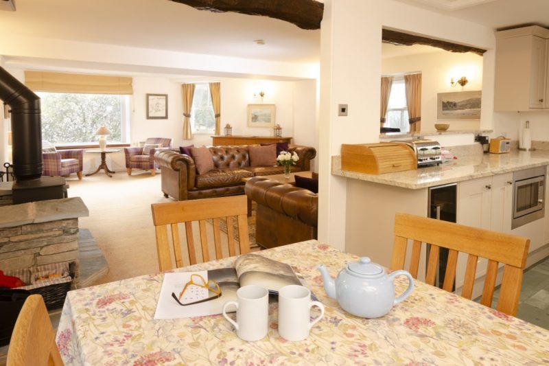 The property is not far from a main bus route enabling guests to connect with towns and scenery further afield without the need to negotiate narrow Cumbrian lanes in the car and find parking at the destination. Picturesque Elterwater is a short walk away with its famous Britannia Inn and Slates Bistro opposite the magnificent maple tree. Just over the stone bridge that spans the babbling River Brathay is the welcoming Eltermere Inn for a touch of fine dining. Surrounded by extensive lawns framed with awe-inspiring views, the Eltermere Inn combines the highest standards of service, good food and informality.