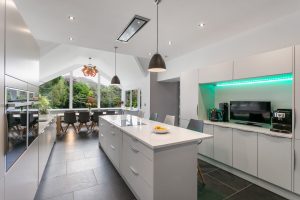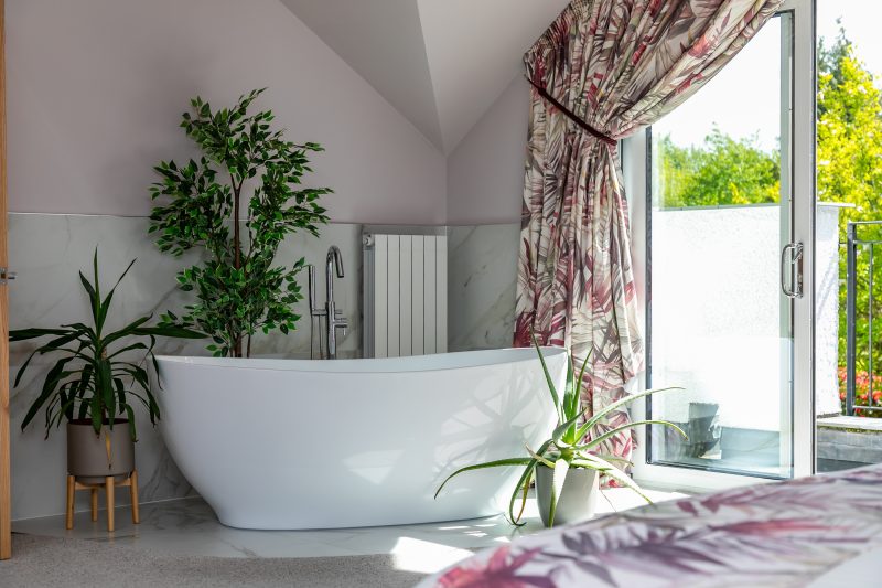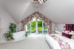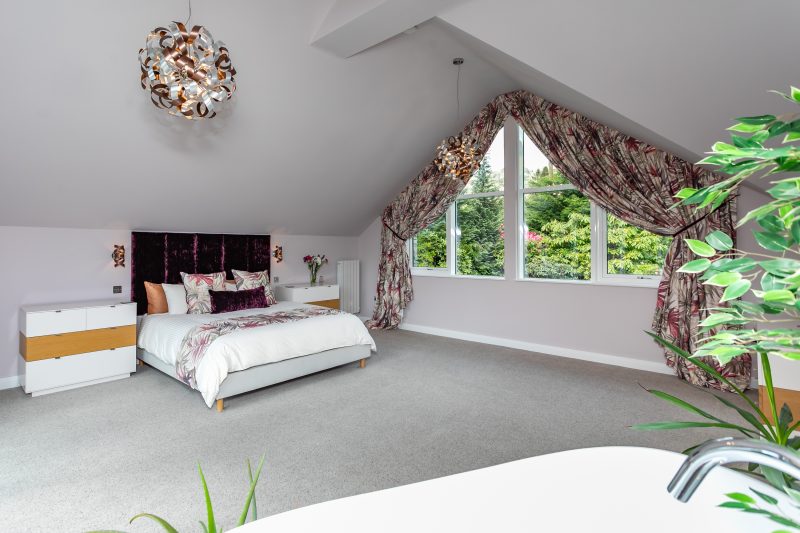 The kitchen-diner has a large table to seat up to 10 guests, with three seating areas on the ground floor with underfloor heating, with gas central heating throughout the rest of the house. There are three bedrooms on the ground floor, with family bathroom and separate toilet, which is great for anyone with restricted mobility. The large master bedroom on the first floor has a separate seating and changing area, as well as a large bath in the bedroom and separate ensuite shower room.