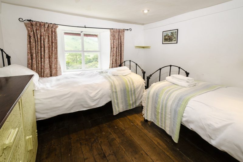 The downstairs bathroom has a shower & WC, and on the half landing there is a family bathroom with shower, WC and bath to soak away a day’s walking in the lakes. Stairs lead up to the first floor with three simple bedrooms with old oak floorboards.