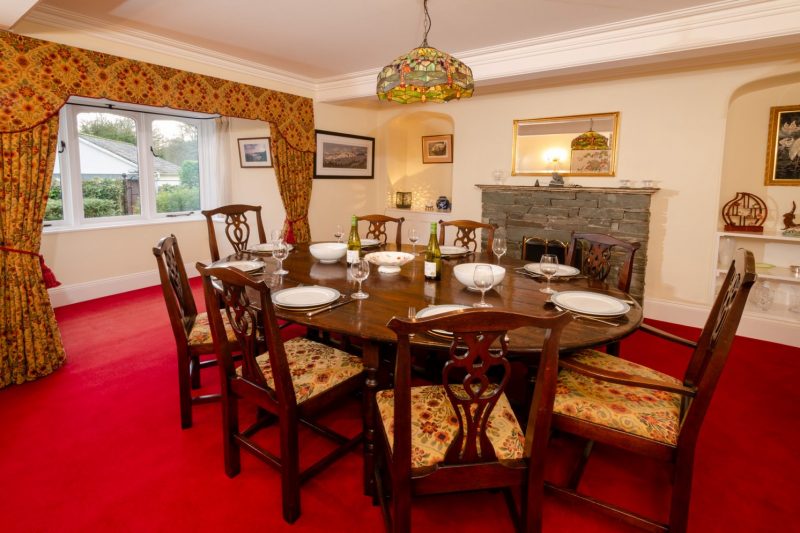 On the ground floor there is a large lounge, open log-burning fireplace and bay window with wide views of the surrounding fells. There is an elegant dining room with a large oak table – for that family celebration; a comfortable sitting room with French doors opening onto the garden patio. There is a well equipped kitchen with a range cooker and circular granite breakfast table, games room, study, with broadband connection across the house; boot and shower rooms and a further WC/cloakroom. Both TVs in the main sitting room and second sitting room are equipped with fire sticks providing access to Netflix and Amazon Prime.
