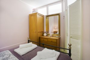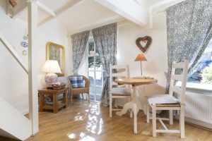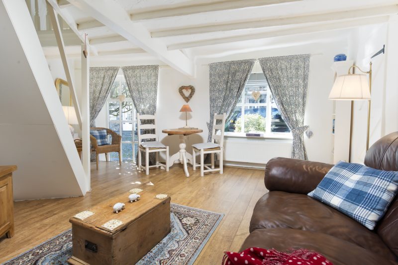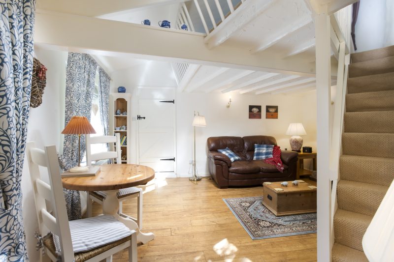From the courtyard, with convenient parking right outside, you enter the hallway with space for boots and coats. The kitchen is well equipped with everything you could need including a washer/dryer, fridge with ice compartment and a view over the cobbled courtyard at the front. The shower room has a spacious walk-in shower, sink and WC, under floor heating and heated towel rail. The pretty double bedroom is very romantic with a high ceiling, wardrobe and chest of drawers. The living-dining room has a solid wood floor, leather sofa, separate chair, flat screen TV with DVD player and electric fire inset and looks out over the courtyard. There is also a dining table and chairs to one side. Above the living room is the old hayloft, with a reclining armchair next to the window providing a delightful space to relax and read.