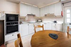 Well-equipped open-plan kitchen/diner with dishwasher, washer/dryer, fridge and freezer, microwave