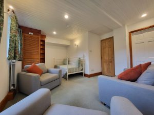 The slate stone cottage is located just behind our admin office, set back off Main Street, and only 100m away from The Britannia Inn and Slates cafe. Set out over two floors, you enter the property on the upper ground floor, where there is the kitchen, main living/dining room, and the two bedrooms (twin and a kingsize), then downstairs to the seperate toilet, second living room and small bathroom (shower over the bath and a wash basin). The property has been furnished to provide a comfortable and spacious accommodation for your stay, and we are offering this as a budget stay to provide access to this wonderful village and valley.